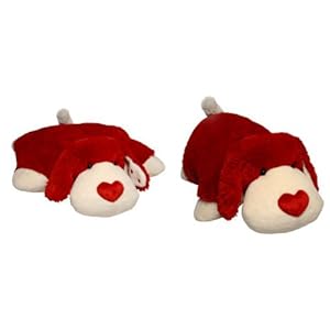 18" plush by My Pillow Pet. Extra soft ; Cuddly. Valentine Dog is made of soft red and white plush Chenille. Open the velcro closure and use as a pillow. Close the velcro closure and you have the softest pet ever. This pillow is 18" square plenty large enough for kids of all sizes and ages. Made of high quality materials they are durable enough to last for years. These adorable plush animals have a fabric strap with a Velcro fastener simply undo the strap and your stuffed animal becomes an ultrasoft super comfy pillow! Bedtime just became easier! Starts out as your pal, then un-velcro its belly, and it quickly becomes your pillow. Washable on Gentle Cycle. Not Recommended for the Dryer! This Pillow Pet is a Genuine Pillow Pet. Not a cheaper version, the quality is amazing. A great Valentine Gift for anyone... young, old, girl or boy. We ship in its original bag, never opened, more sanitary than found in stores.