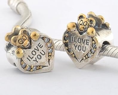 This cute bear with "I Love You" charm is cast of solid .925 sterling silver with 18K gold plated, it will add an adorable addition to any bracelet or bead collection! It is compatible with Pandora, Troll, Chamilia, Biagi, and other jewelry, and interchangeable with Pandora charms / beads! You can create fashionable designs or select beads that have a special meaning to you - jewelry that tells YOUR story. Made of Sterling silver, perfect gift for any occasion.