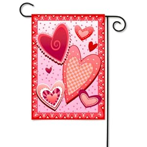 Valentine House Flag features colorful collection of Valentine hearts with pretty background and unique border by Artist Karen Rossi. PrintedValentine's Day Garden Flag Measures 12.5" x 18".Display Valentine garden flags with decorative garden flag stands.