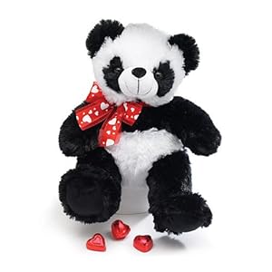 - Valentine 10" Panda with red ribbon with white hearts around the neck.