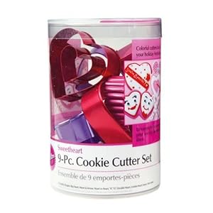 Hearts and sweets...no Valentine's Day is complete without them. Join in the holiday fun by designing a batch of love-themed cookies with Wilton's pastel anodized cutter set. Featuring nine different shapes, the collection includes single hearts, an entwined duo, an "X" and "O", a crinkled heart, and a heart pierced with an arrow. Each metal cutter measures between 1-1/2 to 5 inches and offers exceptional definition to make sharp, clean incisions into dough. Awash in cheerful pink and purple, the set also makes a great gift. The cutters are best washed by hand and come with a delicious recipe to get ideas rolling. --Kara Karll