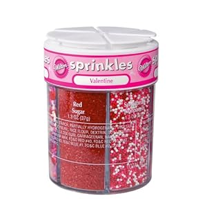 Darling Sprinkle Mix. I made a chocolate cake this weekend and put the red sprinkles in the shape of a heart. People really liked the texture of the sprinkles. Sweetheart mix can be used year around.